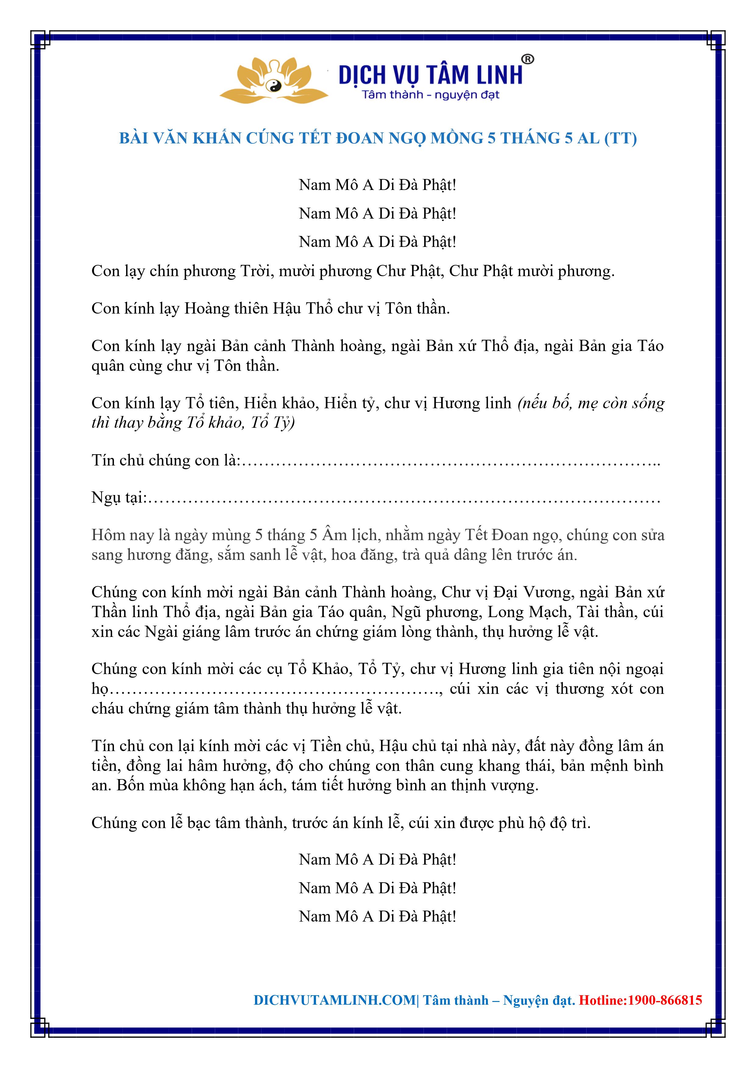 Văn Khấn tết Đoan Ngọ Thông Dụng