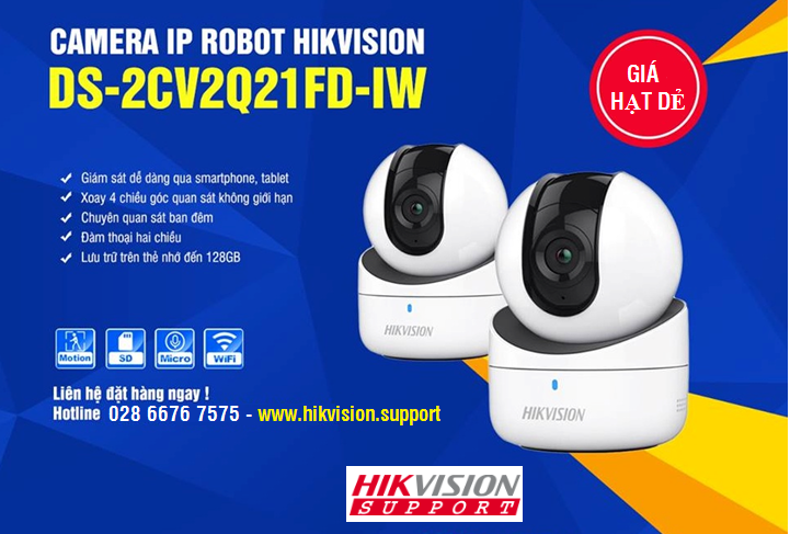Hikvision.Support - Nhà phân phối camera Hikvision chuyên nghiệp tại Việt Nam, cam kết đem đến cho khách hàng giá tốt nhất đối với mọi sản phẩm từ Hikvision, nhất là camera DS-2CV2Q21FD-IW. Mọi chi tiết, quý khách vui lòng liên hệ Hotline 028.6676.7575 hoặc 08.1676.7575 để được hỗ trợ chu đáo.