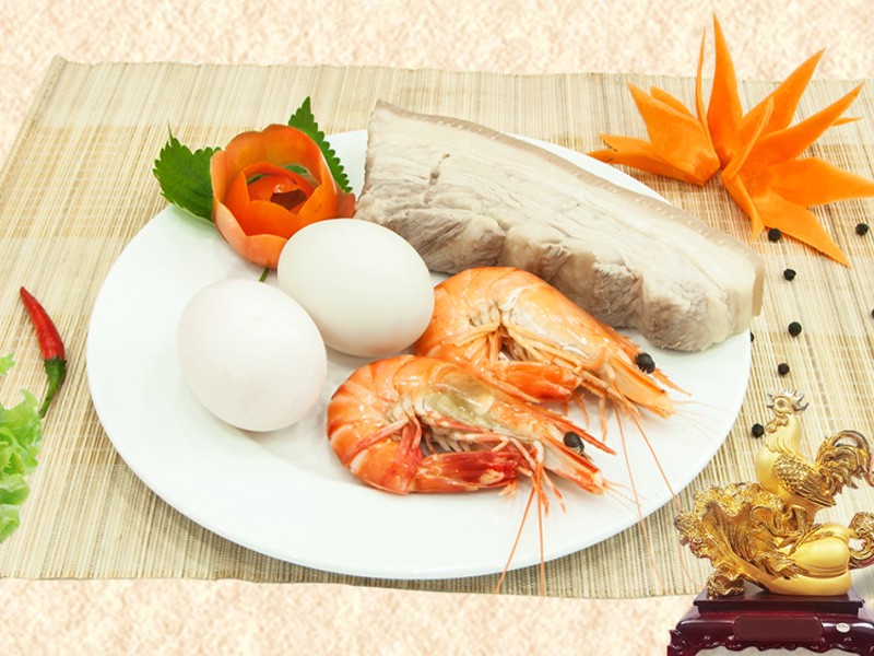 - Miếng thịt ba rọi luộc (động vật sống trên cạn) – tượng trưng cho hành Thổ
