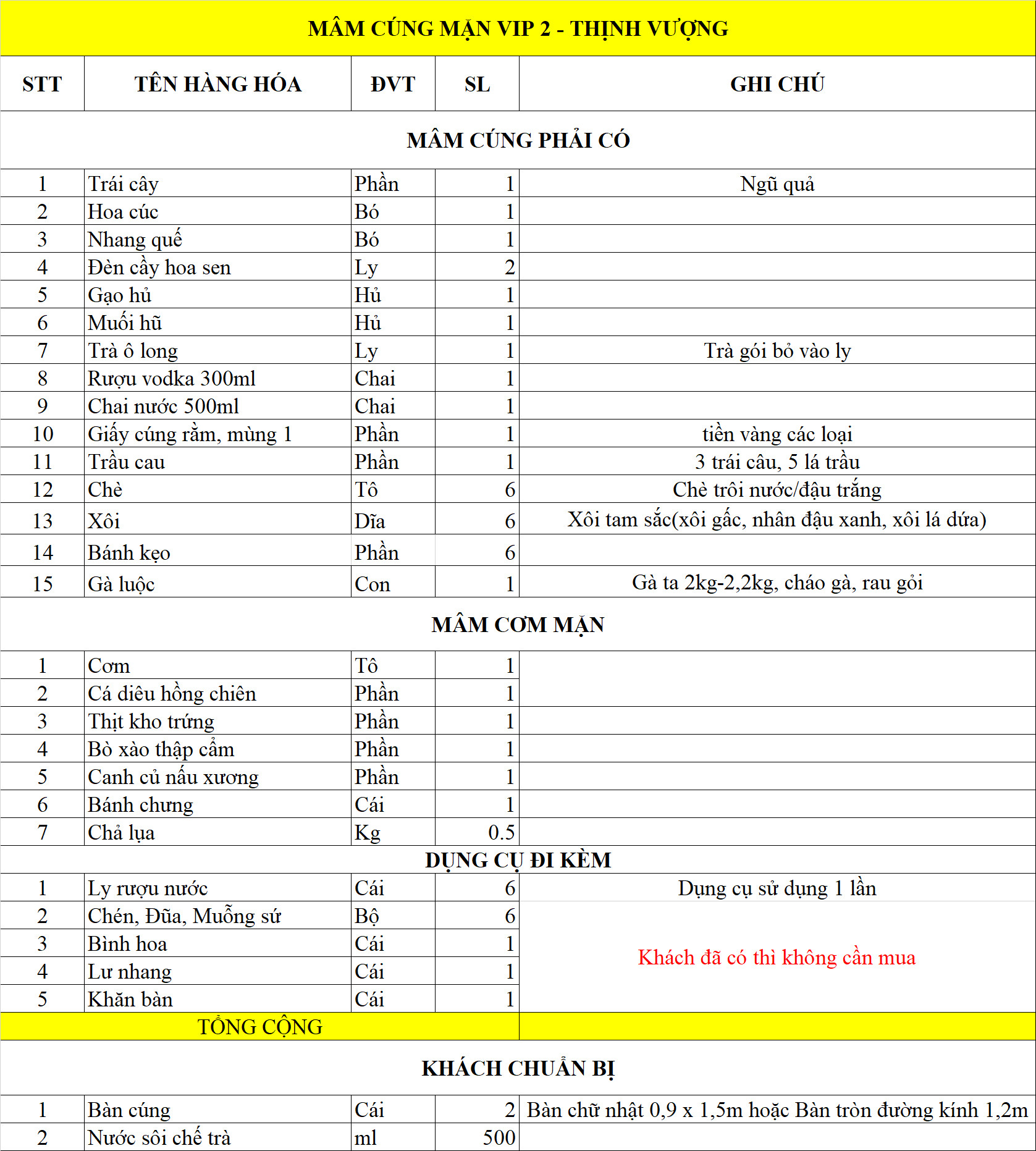 Mâm Cúng Rằm, Mồng 1 VIP 2 - Thịnh Vượng