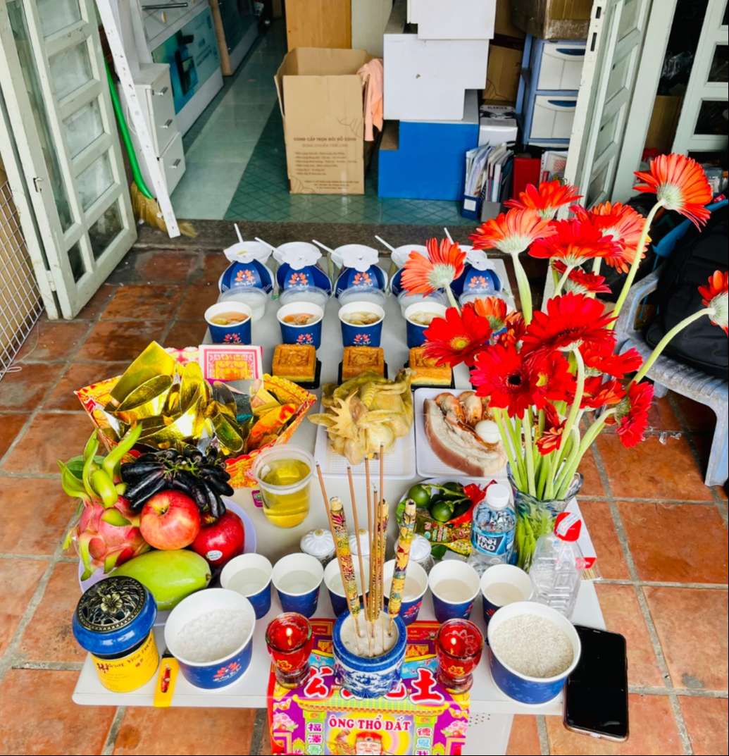 Gia chủ thành tâm xin dâng hương các món hoa quả, gạo muối, giấy tiền vàng bạc, bánh kẹo, …. cúng cho các Ông Bà, Chư Thần, những vị khuất mày khuất mặt, cô bác đất đai trong khu vực này.