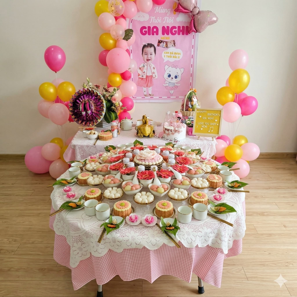 Hiện nay, do nhịp sống bận rộn, nhiều gia đình chọn tổ chức vào đúng ngày sinh âm lịch hoặc ngày Dương lịch để thuận tiện cho việc mời người thân, bạn bè dự tiệc. Tuy nhiên, Dịch Vụ Tâm Linh khuyên rằng phần nghi lễ cúng bái 12 Bà Mụ cốt lõi vẫn nên được thực hiện vào ngày âm lịch để đảm bảo giá trị tâm linh trọn vẹn. Nếu ngày đó vào giữa tuần, ba mẹ có thể cúng bái trước, sau đó tổ chức tiệc mặn đãi khách vào cuối tuần.