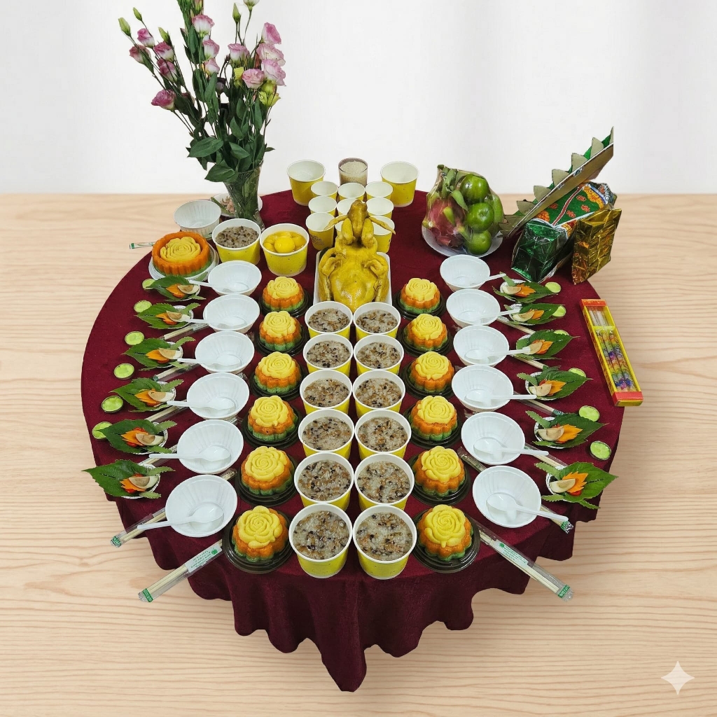 Mâm cúng đầy tháng là nghi lễ quan trọng đánh dấu cột mốc đầu đời của bé. Một mâm cúng đầy đủ thường bao gồm xôi, chè, gà luộc, trầu cau, hoa tươi, nhang đèn và các lễ vật theo phong tục dân gian.