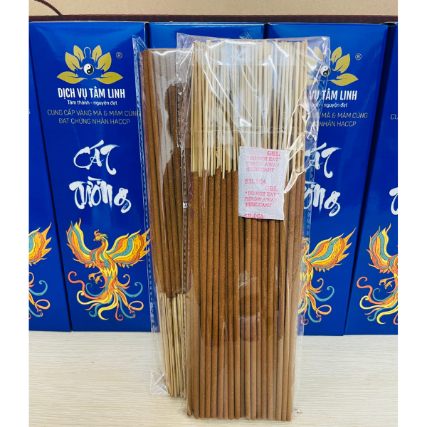 Nhang dài 23cm đóng gói kỹ, một hộp nhang 𝐂á𝐭 𝐓ườ𝐧𝐠 có 02 bó nhang nhỏ được bỏ túi hút ẩm riêng nhằm mục đích hạn chế ẩm khi sử dụng lâu ngày.